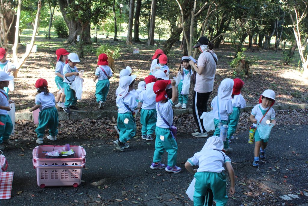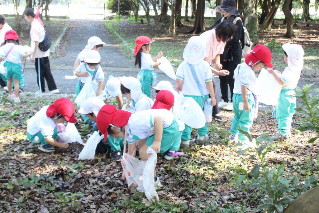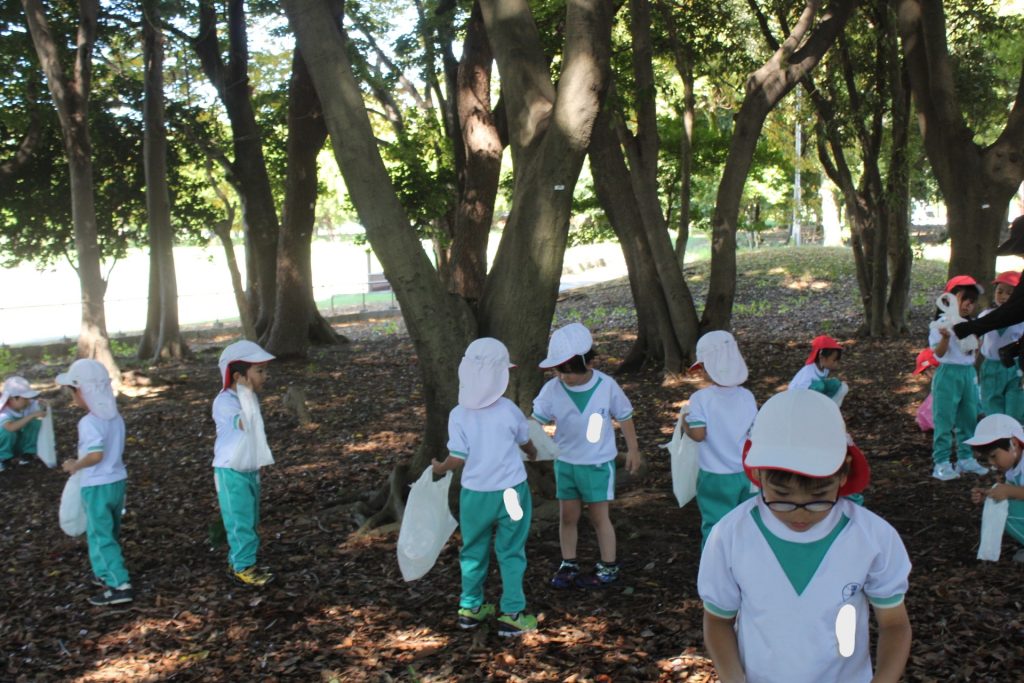前日の雨で芝がベタベタになってしまい、年長さんは残念ながら芝滑りはできませんでしたが、全学年どんぐり拾いへ(^_^)v袋いっぱいたくさんの様々な種類のどんぐりを夢中で集めていました✨✨