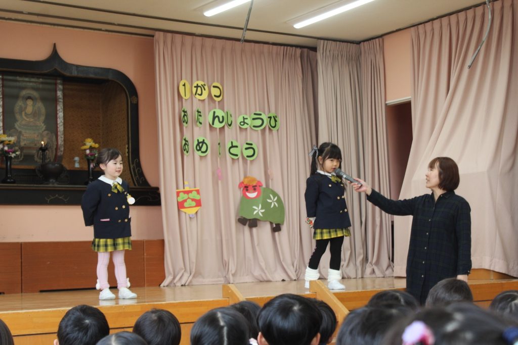 今日は幼稚園の先生やお友だち、おうちの方みんなにお祝いしてもらい、嬉しそうな子どもたちでした(*^-^*)これからも元気に大きくなっていってくださいね✨